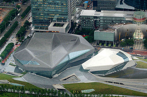 广州歌剧院:2011年初,出生于伊拉克的扎哈哈迪德完成了她在中国市场的第一个大型项目。虽然目前她在成都、北京、上海等城市还有其它在建项目,但广州歌剧院项目是她在这个国家取得的第一个成功。广州歌剧院的兴建正好顺应了中国转变发展方向,着手发展省级城市的的历史潮流。