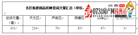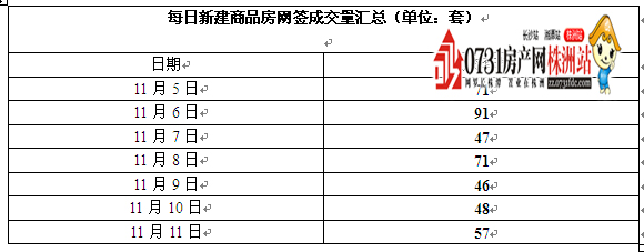 株洲11月第二周新建商品房网签成交总套数为431套。总体来说,本周株洲新建商品房成交量与上周相比相差不大。其中,11月6日达到周成交量高峰,为91套,占周总成交量的21.1%。11月9日达到本周最低点,仅46套,占周总成交量的10.7%。此后,在11月10日日后有小幅上升,但成交量也并不理想。