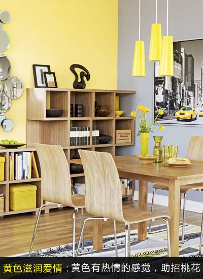 在餐厅中想要提升桃花运,多建议用暖色系的颜色作为主色调布置。比如,暖色中的橘红色或黄色可以给人以温暖和热情好客的感觉,这样的颜色用于餐厅中自然也提升你的桃花运。
