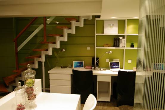 70㎡左右商住两用主题LOFT户型,将办公空间与家居生活空间完全分隔,成就上下两层不同属性的的区域划分,提高作业效率的同时避免不同类型工作的互相干扰。下层商务空间保证工作团队各有其位,更好地各司其职,这对于个人工作室、创意事务所等智力产业服务机构尤为关键。上层家居空间采用了典雅高贵的现代新古典风格,大量的浅色调装饰庄重又不突兀,与室内家具自然相溶,营造出时尚、高贵、轻松、愉悦的视觉空间感。