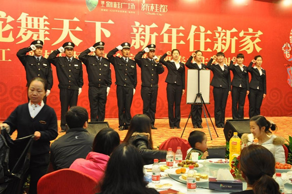 本次答谢会,既是建工·新桂广场在新年给所有嘉宾的一次集体答谢和感恩回馈;也是在2012年株洲楼市的价值博弈中,与所有业主携手创造出株洲第一品质大盘,和全年销售冠军辉煌成绩的汇报与总结;更是建工大家庭,未来左邻右里之间的一次团圆大聚会!“超过500位业主选择我们,这是湖南建工集团的无上荣幸,这份信任更将成为,我们大型国企沉甸甸的责任和义务!为每一位业主提供最宜居的品质生活体验,争取未来物业增值的最大化,将是我们建工人永远不会动摇的使命!”建工·新桂广场营销总监在答谢会现场感慨致辞!从下午两点半到五点短短两个半小时完全沉浸在热烈、温馨、欢笑和诚挚的氛围中,而上至董事长真诚实意的感恩陈词,下至物业公司员工的集体庄严宣誓,中间还穿插众多表演答谢时间,使得整个活动的每个细节,无不展示出建工集团作为大型国企的亲和大气,以及深厚细致的服务理念;而现场包括最新IPHONE5在内的抽奖送礼互动单元,更是让活动高潮迭起,甚至有业主带来的朋友希望立即购买的热切举动,整个答谢宴获得所以参与客户的交口称赞。