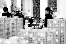 株洲某楼盘的售楼部,置业顾问正忙碌着。