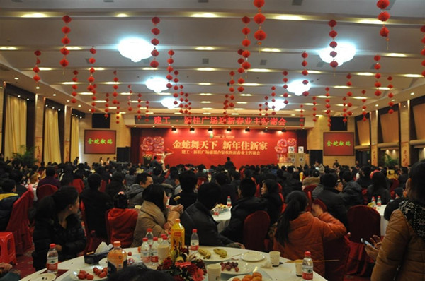1月19日周末,冬意浓郁但在天台山庄二楼最大的宴会厅内却高朋满座,春意盎然,建工集团2013年“感恩合家欢曁新春业主答谢会”现场坐无虚席,现场甚至有晚到的业主临时加桌加席,热闹而有序的场面让整个活动氛围持续热烈且温馨至极。坐在笔者旁边的某业主朋友陈先生兴奋地感慨道:“我同事就是买了建工的房子,一直跟我说开发商品牌强,户型、品质和地段都好,今天还特地邀我过来参加答谢宴,从来没听说过开发商请小业主吃饭这种新鲜事,他们的诚意就让我很心动,那句‘新年住新家’的口号也真说到我心里去了,我希望明年能买套这里的房子,跟我同事还能成邻居”!