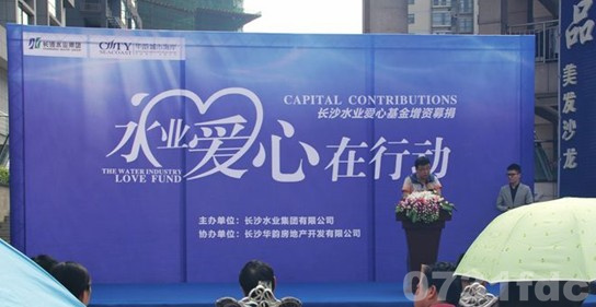 5月28日长沙水业爱心基金增资募捐活动在河西华韵城市海岸营销中心进行,一大早虽然阳光强烈,但是也抵挡不住各界爱心人士的脚步。现场捐赠活动开场领导致词,紧接着就是各界单位、员工出资出力,都踊跃参与。
