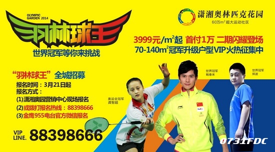 潇湘奥林匹克花园启动了盛大的“羽林球王”活动,全城招募正在火热报名中,不限制年龄、不限制性别,只要喜好羽毛球运动勇于挑战球技,那就赶紧来报名吧!