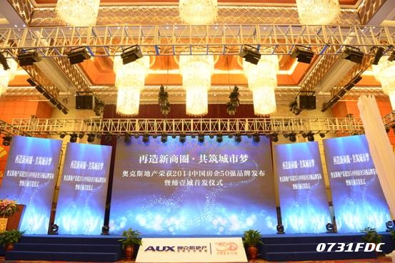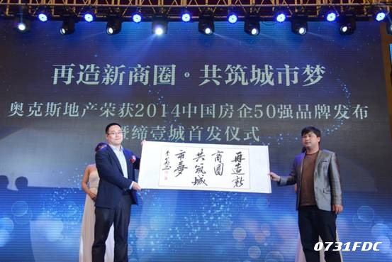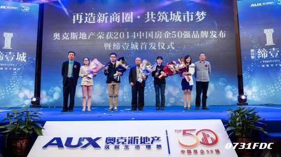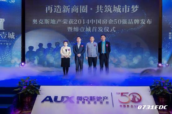 2014年4月27日下午,以“再造新商圈 共筑城市梦”为主题的“奥克斯地产荣获2014中国房企50强品牌发布会暨缔壹城首发仪式”在长沙世纪金源大酒店盛大举行。