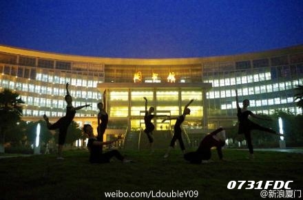 高校7位舞蹈队女生摆高难度创意动作拍毕业照