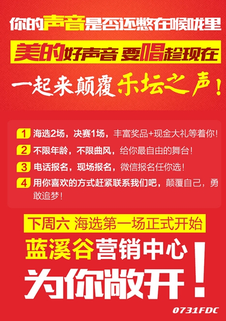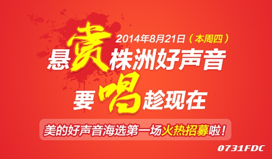 2014年8月21日(本周四)美的好声音海选第一场报名开始!