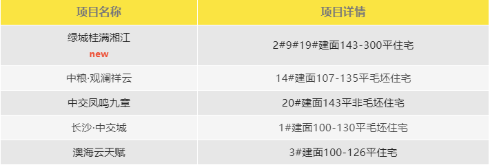 本月推新以毛坯产品居多。纯新盘占到了三分之一。从面积段来看,以刚需产品为主,大平层产品也有,如位于天心区的中海阅湘台和位于望城区的绿城桂满湘江,能满足不同面积段购房者的置业需求。从推新区域来看,本月推新依旧集中在岳麓区、望城区。