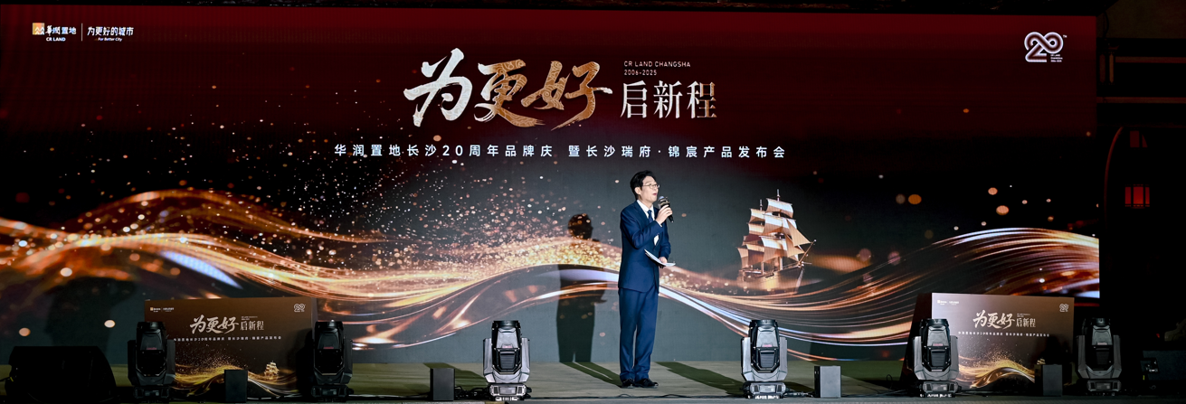 在全场期待中,华润置地长沙地区公司总经理冯伟先生登台致辞,娓娓道来一段与长沙共同成长的二十年征程。从2006年落子星沙凤凰城,到如今这座百万方的“城中城”历经岁月洗礼,仍焕发出历久弥新的生命力;从万象城商业体落地,一跃成为城市级商圈标杆;再到近年来悦府、润府、瑞府三大高端产品系连续斩获长沙单盘销冠,华润置地以一个个标杆项目,不仅建造美好人居,并参与推动着长沙的商业进阶和城市焕新。