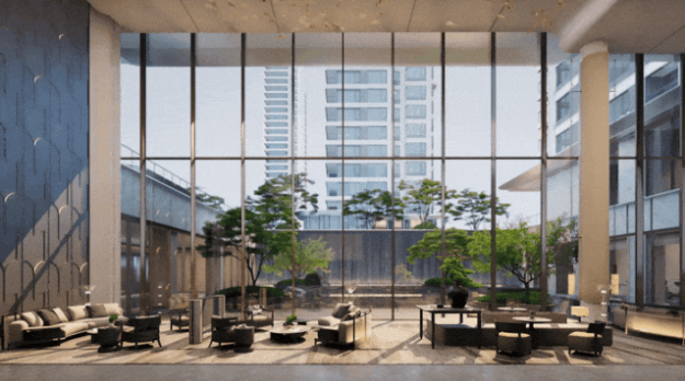 C07#央景楼座凭借得天独厚的绝佳占位,将优质的观景中轴视野和俯瞰下沉式庭院四季变换演绎得淋漓尽致。在这里,多元景观盛宴将成为楼座的生活日常,饱览葱郁园林,满目皆景。