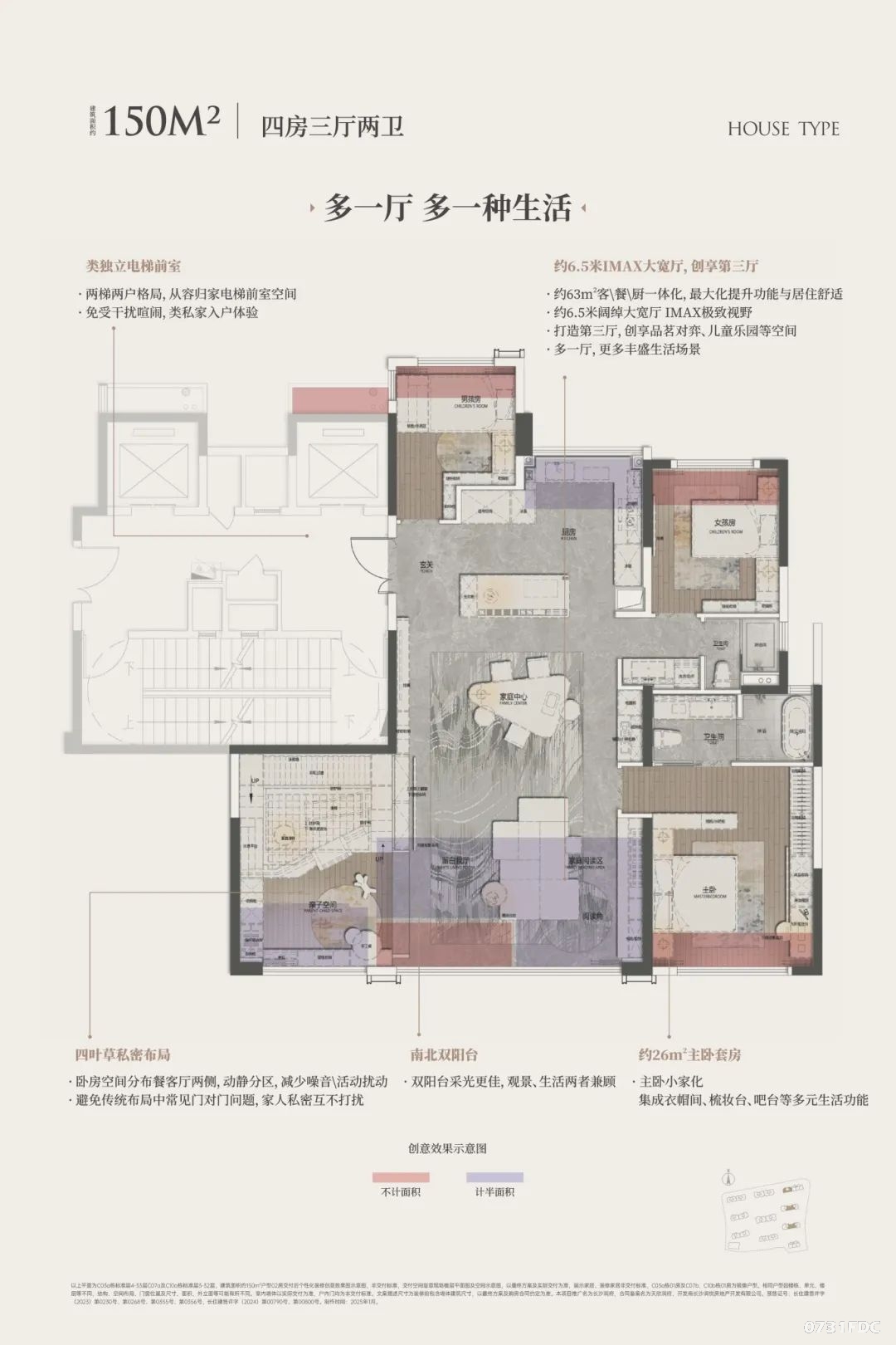 拥有罕见的空间可塑性,创新性打造了早C晚A休闲吧台和家庭中心,同时带来创想第三厅,约63㎡客餐厨一体化空间,带来更多丰盛生活场景。家庭聚会、朋友派对,亦是静谧的独处时光,都能满足您的需求。南望即是下沉式水景庭院,让您在繁华都市中也能拥有一片宁静的诗意天地,四季的美景尽收眼底。