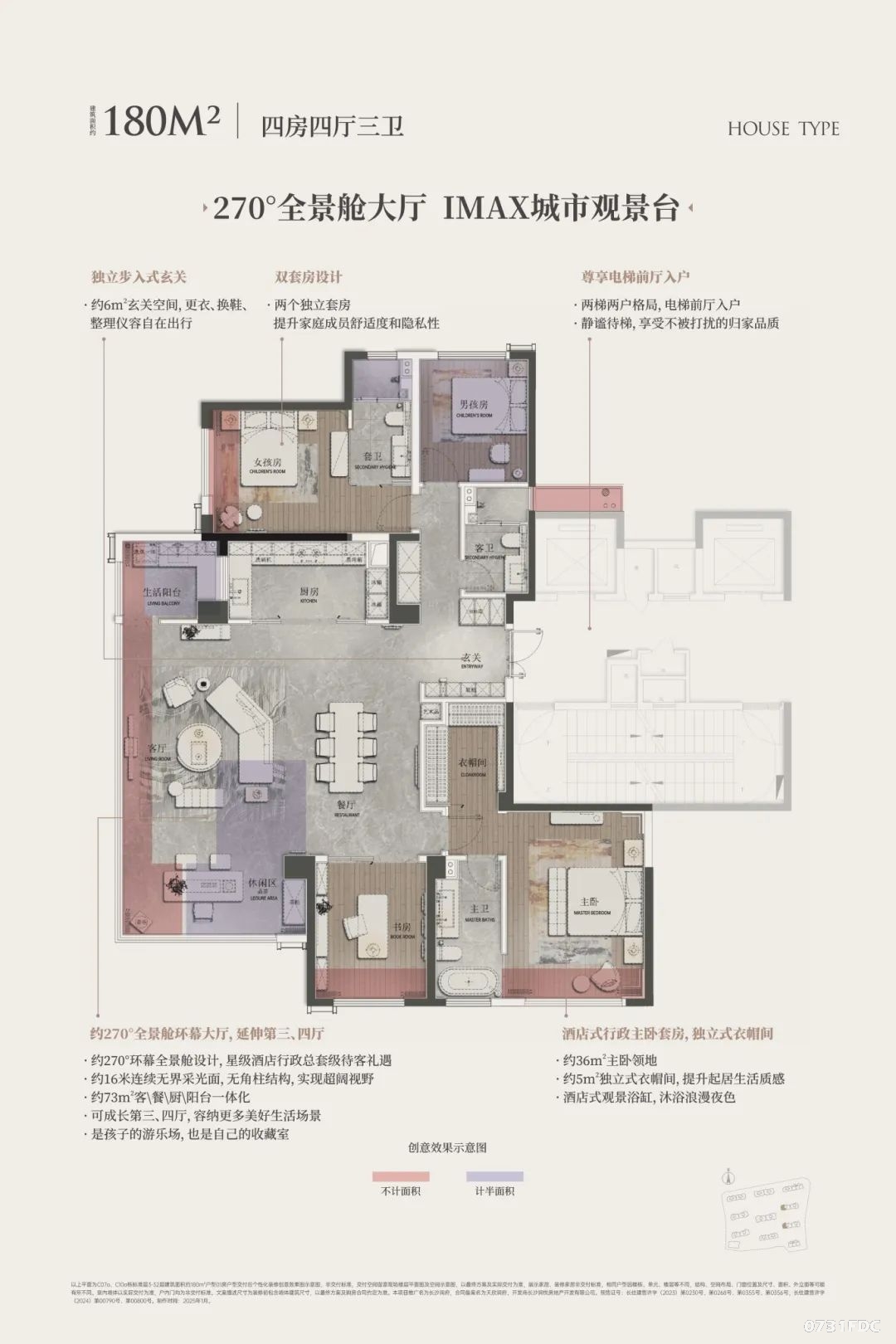 同样是旗舰级全景舱产品。在270°全景舱大厅的联动下,带来 IMAX级城市观景台,世界的繁华尽收眼底;约16米连续无角柱采光面,营造超尺空间感,让舒适与每一位家庭成员共享。低层可纵览中央园林景观长廊,感受自然的静语;高层风景如画,让人心旷神怡。主卧更是打造出度假酒店般的星级体验,独立卫浴、衣帽空间一应俱全,尊贵非凡。