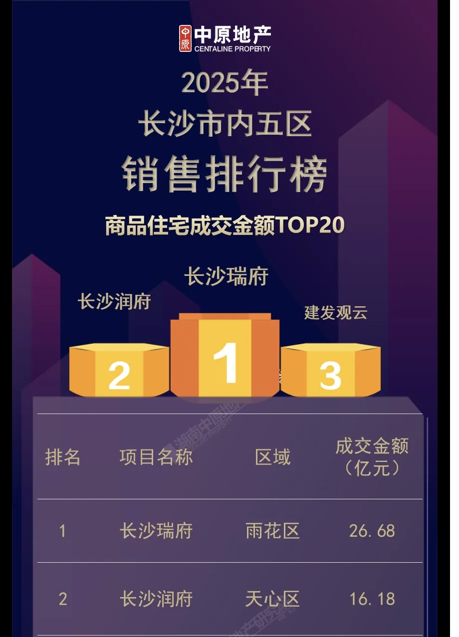 2025年华润置地旗下长沙瑞府、长沙润府分别以26.68亿元和16.18亿元的销售额,占据长沙单盘销售榜前两位。这份成绩单背后,也反映了业主对产品品质与社区服务的高度认可。