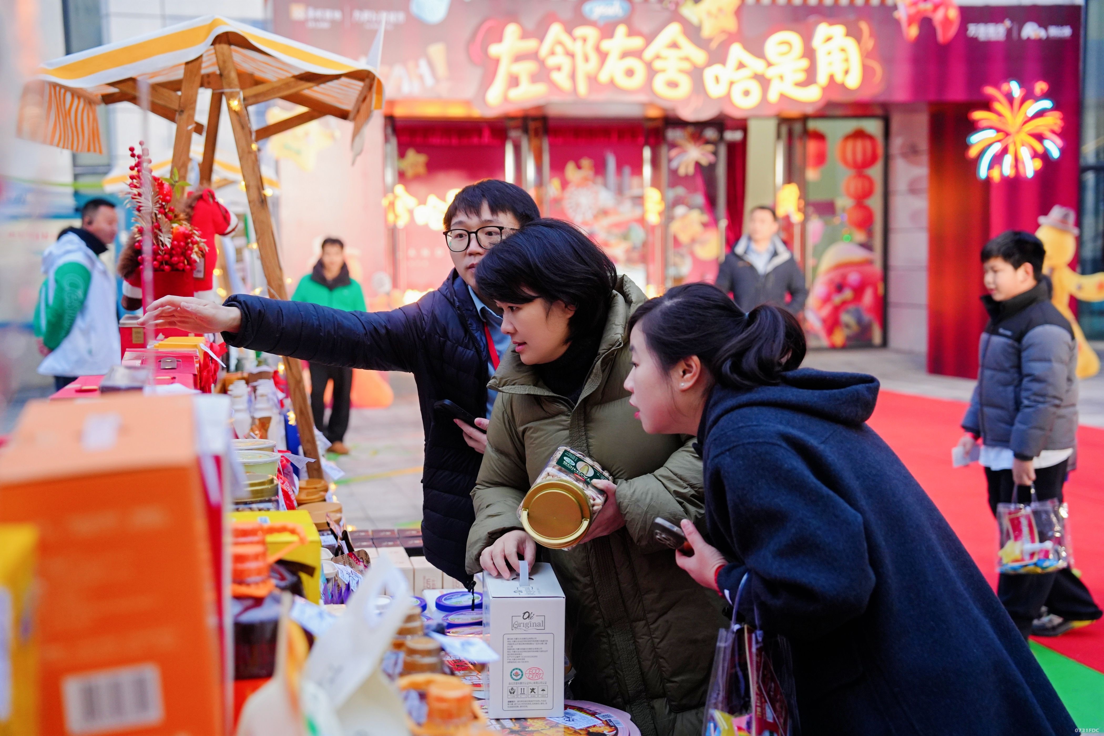 本次活动联合了华润万象城、华润OLE精品超市、华润怡宝、华为智驾、华为手机等优质商业与品牌资源。 演出开始前,作为本次活动合作商,华为尊界S800专车接送业主直达春晚现场, OLE精品货架、美食集市、挥春摊位前挤满了参观业主,一家人则在入口打卡点前合影留念,留下新年的美好祝愿。