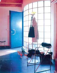 在居室的装修中,恰当地运用玻璃和镜面等扩展空间的元素,既使得狭小空间显得宽敞,又能令开放空间的层次更加丰富。如果门厅入口处的空间较为局促,可以利用墙面下方鞋柜的玻璃镜面做点文章,它能巧妙地形成视觉上的空间虚像,从而从心理上使得门厅不再显得那么狭窄;如果你对收藏比较感兴趣,客厅中文物架与推拉门的组合再配以清澈透明的玻璃,使对开阔空间进行的分割显得十分自然而流畅,丝毫不觉拘谨;用玻璃门上的方格状磨砂处理微妙而朦胧地限制了空间层次,既丰富又不显杂乱;对于卧室的面积并不宽裕的房间来说,通过墙面、天花板的简洁处理以及壁柜上大块镜面玻璃所形成的虚拟空间,顿时令人一扫堵塞、压抑的心情,油然而生心旷神怡的感觉。