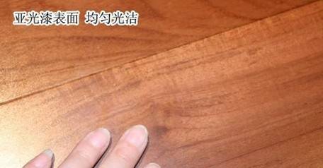 评测员挑了一款亮光的地板做比较,发现亮光地板有明显的反光现象,光滑如镜面,用手触摸也没有明显的纹路感。那么实木地板刷亮光漆好还是亚光漆好呢?业主完全可以根据自己的喜好选择,要注意考虑室内空间和采光性,如果空间大采光性强,使用亚光漆会好一些,如果空间小采光性差使用亮光漆会好些。