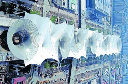 也许游客不知道,这些在白天采纳阳光、雨天收集雨水、夜晚幻变出炫目色彩的阳光谷,曾在设计到施工的近2年多时间里让世博局几次骑虎难下。