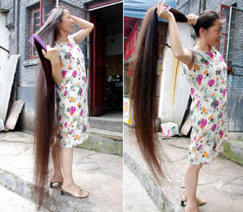 每日清晨,吕雪英站在杭州白沙路75号的家门口梳头时,总会招来许多人围观,为她的一头长发赞叹不绝。吕雪英的头发最长处为2.05米,一米六三的她,梳头时不得不站在台阶上,以免头发拖在地上。