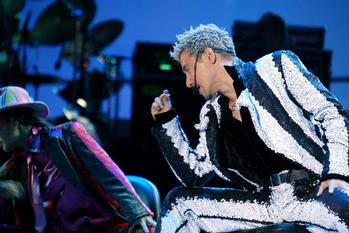 6月28日晚,素有“歌神”之称的张学友在北京“2008---公益演唱会”中,用他无懈可击的魅力声线、令人炫目的动感舞姿以及一首接一首的绕梁金曲,让工人体育场内近5万名疯狂歌迷如醉如痴地领略了天王巨星的风采,度过了一个星光璀璨的不眠夜。