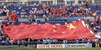 图文-中国队VS哥斯达黎加 看台上的巨幅中国国旗