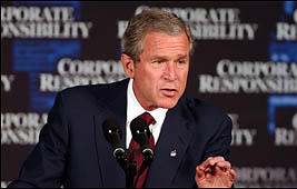 美联社报道,布什称,“美国报纸的经济新闻版不应看起来像一个丑闻明细表。”他呼吁,为了增进投资者信心,让本公司员工感到自豪,并重新获得美国人民的信任,商界应该建立新的个人道德准则。布什表示,“美国强大的经济需要更高的商业伦理标准”,因此政府将运用一切法律手段,揭露并根除腐败,终结伪造文书、隐藏真相、违反法律的行为。他专门强调,在这方面“自律是重要的,但那远远不够。”