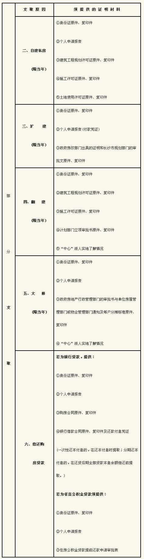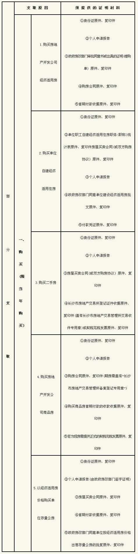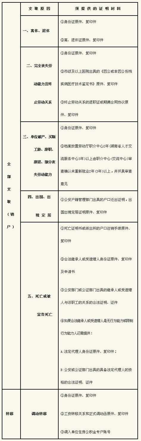湖南省直单位住房公积金提取、转移须提供的有关证明一览表
