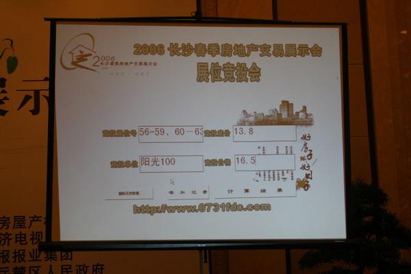 ¡¡¡¡2006Äê3ÔÂ23ÈÕ,ÔÚ»ªÑÅ»ªÌì¹ú¼Ê´ó¾ÆµêÈýÂ¥ºþÄÏÌü¾ÙÐÐÁË2006Ä곤ɳ´º¼¾·¿µØ²ú½»Ò×չʾ»á·¿µØ²ú¿ª·¢Æóҵչλ¾ºÍ¶ÕÐÉ̻ᡣ233¼Ò·¿µØ²ú¿ª·¢ÆóÒµÆë¾ÛÒ»ÌþºÍ¶±¾´Î´º½»»á1¡¢2¥չλ¡£ÉÏÎç9µã£¬³¤É³Êз¿ÎݲúȨ¹ÜÀí¾Ö¸±¾Ö³¤Îº½¨³¬Ö£ÖØÐû²¼¾ºÍ¶»á¿ªÊ¼¡£