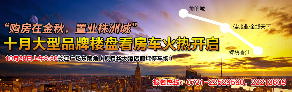 新浪乐居株洲站与0731房产网株洲站在这个购房好时机中,开启十月株洲大型看房车活动,针对于株洲市民非常关注的片区,精挑细选了三个宜居品质楼盘——金域天下、美的城、锦绣香江。同时,三大品牌楼盘也提供给本次看房团独家的优惠措施: